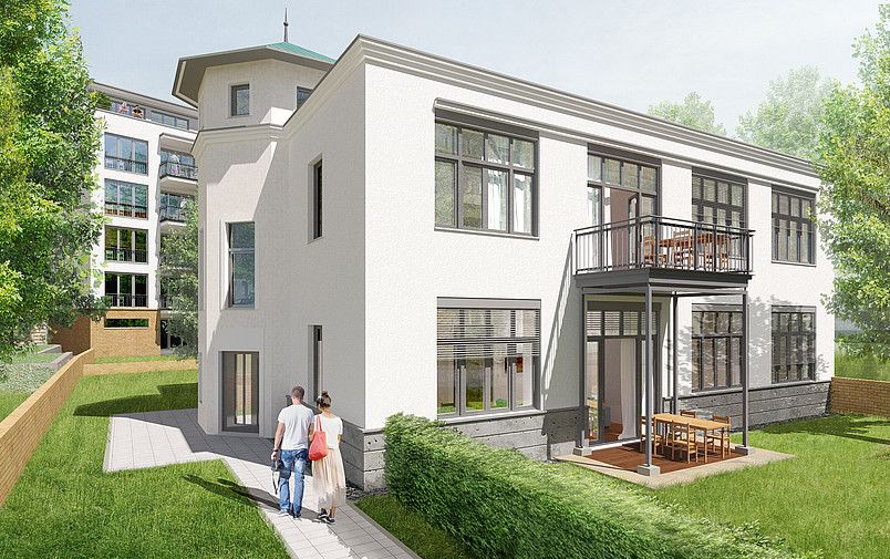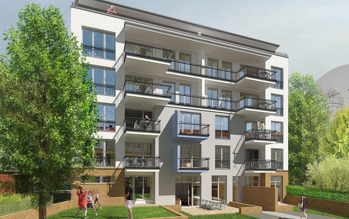 Neubau von zwei Wohngebäuden mit Gewerbeeinheit sowie Umnutzung und Modernisierung eines Gartenhauses zu Eigentumswohnungen in Berlin.