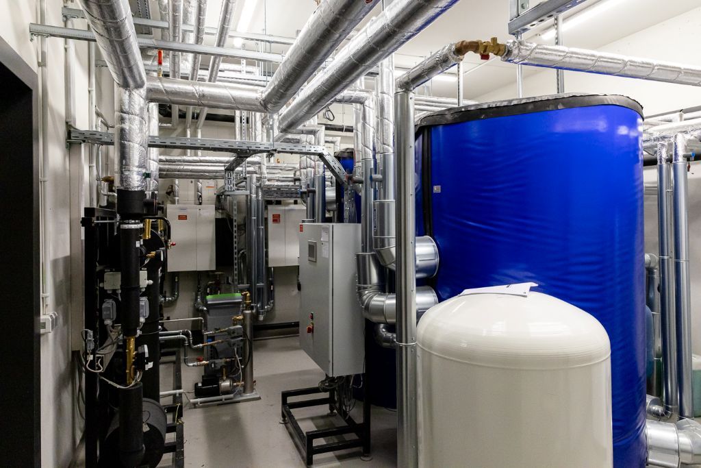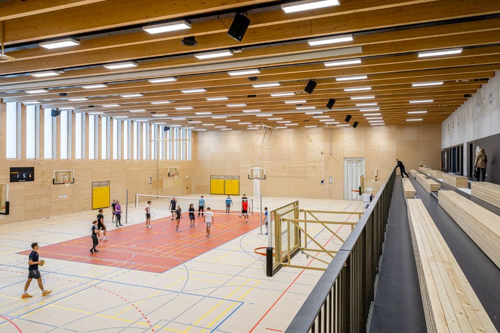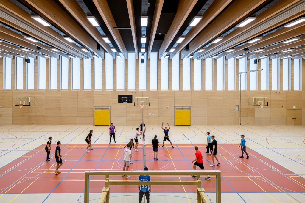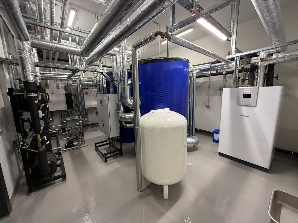 Die besondere Herausforderung für das Büro eins.a lag in Berücksichtigung modernster, energiesparender und nachhaltiger Technologien wie Solarthermie in Verbindung mit einem Erdtank zur Quellenregeneration und Solewärmepumpe, vollflächiger Lüftung, Sportbodenheizung, Wassermanagement und Gebäudeleittechnik mit Fernüberwachung